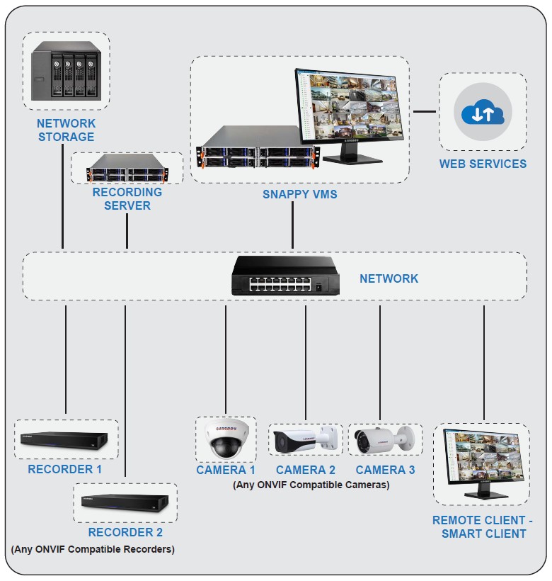 The Snappy VMS proprietary software platform was developed by Snappy. This platform improves central Video Management Server (VMS) and integrates related hardware. This highly effective platform delivers data and intelligence via a pre-installed VMS on standard, off-the-shelf servers.